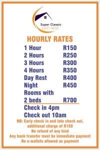 We also have hourly rates please refer to brochure and contact us for room availabillity